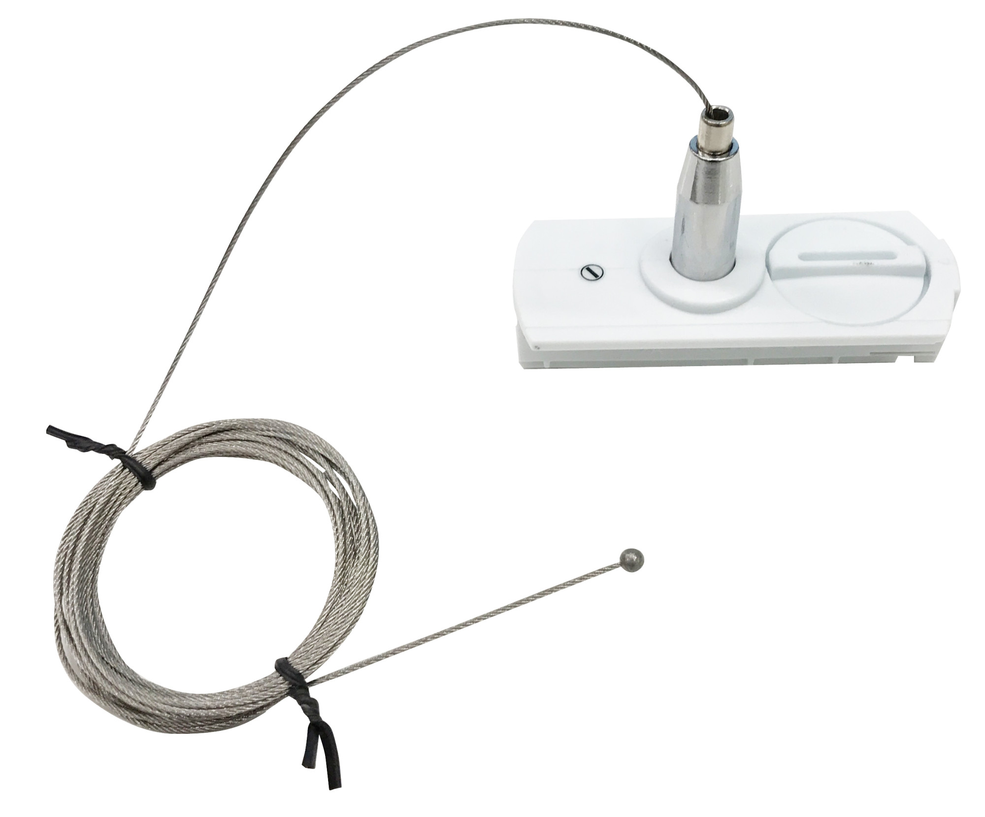Cable display systems tie acrylic panels together with the necessary cables and fittings. The fittings consist of floor and ceiling anchors which grip and tension the cables, together with clips to hold the panels in place, securing them to the cables.